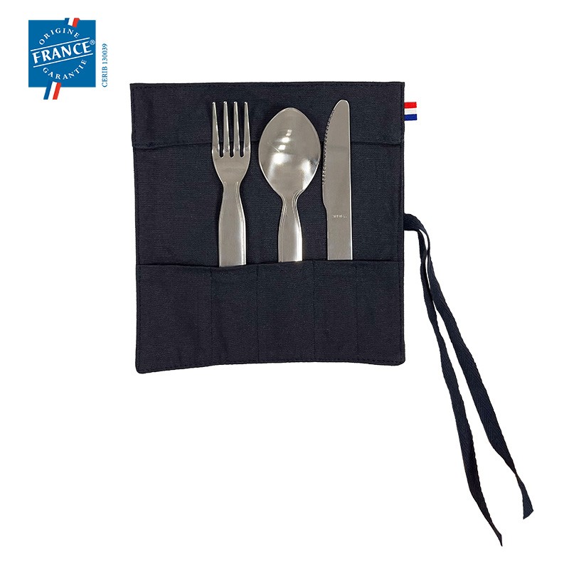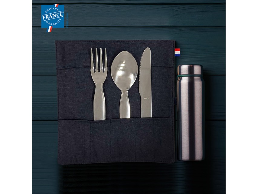 Découvrez notre élégant set de couverts, conçu pour allier praticité et style. Confectionné en France, ce set comprend des couverts en inox de haute qualité, accompagnés d'une pochette de transport en coton recyclé idéale pour vos repas en extérieur ou vos pique-niques. Profitez d'une expérience culinaire raffinée, où que vous soyez !